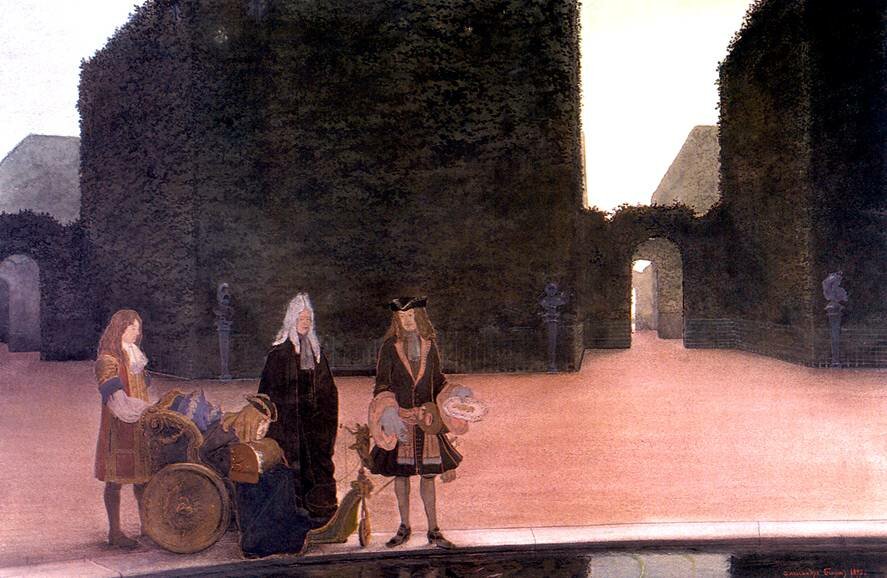 Король крепился изо всех сил, выигрывая время для своего несовершеннолетнего наследника. Долгое время он действительно поражал всех крепостью здоровья: еще в 1706 году спал при открытых окнах, не боялся «ни жары и ни холода», продолжал пользоваться услугами фавориток. Но в 1715 году, 10 августа, в Версале король вдруг почувствовал недомогание и с большим трудом дошел от кабинета до своей молельной скамейки. На следующий день он еще провел заседание кабинета министров, давал аудиенции, но 12 августа у короля возникла сильная боль в ноге. Ги‑Крессан Фагон ставит диагноз, который в современной интерпретации звучит как «радикулит», и назначает рутинное лечение. Король еще ведет привычный образ жизни, но 13 августа боль настолько усиливается, что монарх просит перенести его в церковь в кресле, хотя на последовавшем затем приеме персидского посла всю церемонию он простоял на ногах. История не сохранила ход диагностического поиска врачей, но ошиблись они с самого начала и держали свой диагноз как флаг. Замечу, что флаг оказался черным…